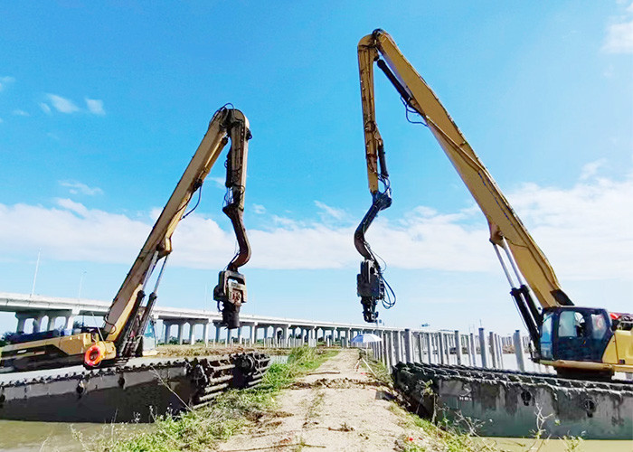บูมอาร์มเสาเข็มรถขุดพร้อมค้อนตอกเสาเข็มสำหรับคนขับเสาเข็ม ประสิทธิภาพสูง รับประกันสูง