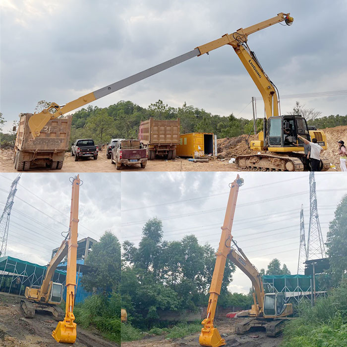 สภาพแวดล้อมการทำงานของแขนยืดไสลด์รถขุดบูมระยะไกลหนึ่งชุด: ขุดทราย ดิน โคลน สิ่งสกปรก ขุดหลุมฐานรากบ้าน ขุดในที่แคบ